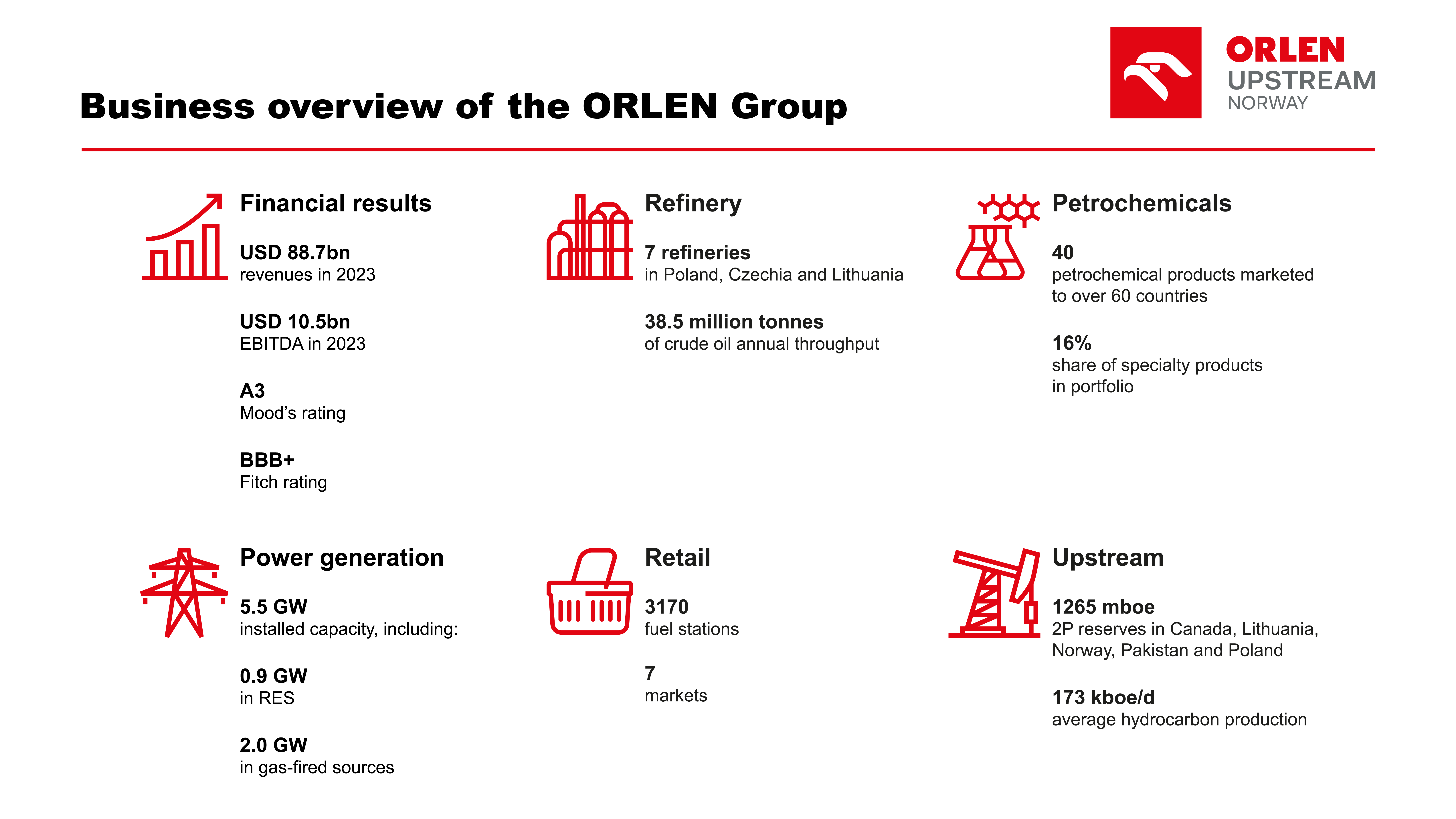 ORLEN Group is an integrated, multi-utility corporation primarily active in Central Europe. The company supplies energy and fuel to over 100 million Europeans, and its advanced products are sold in over 100 countries across six continents.